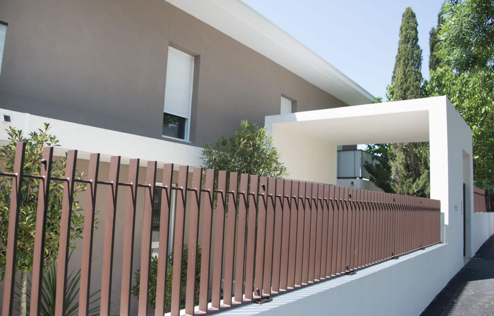 Le projet a été conçu pour être perçu depuis la rue des Bouisses comme deux maisons contemporaines protégées de celle-ci par un écran de verdure.